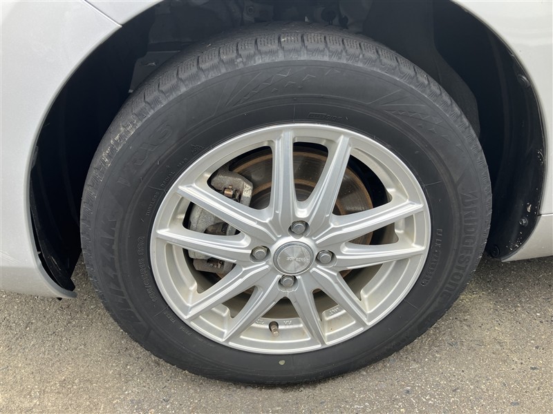 社外アルミ。タイヤサイズは185/65R15、現在は冬タイヤ装着で残り溝は約5ミリです