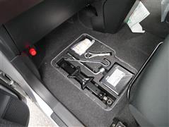助手席の足元にタイヤパンク修理キッドがあります