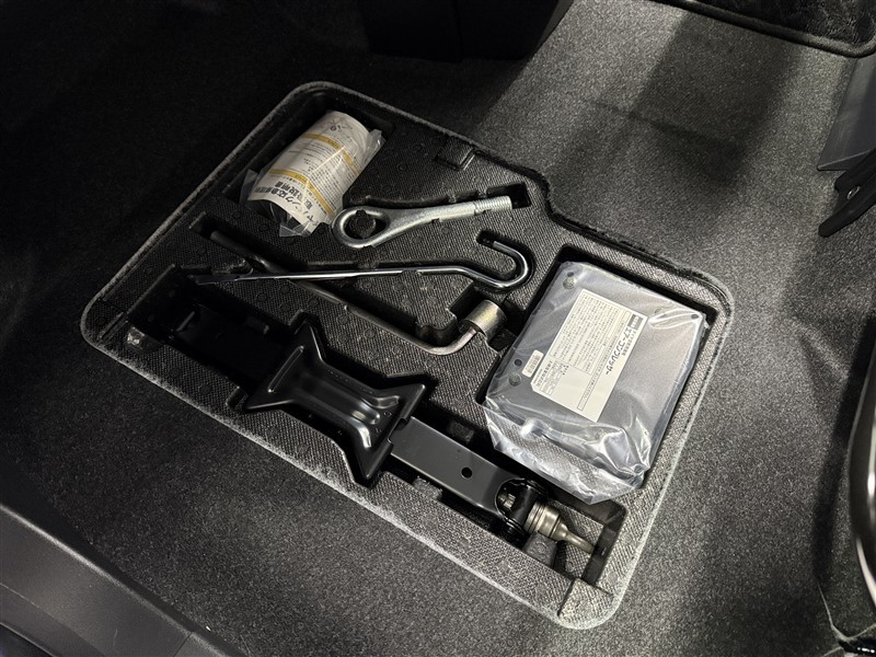 スペアタイヤレス車の為パンク修理キットになります。