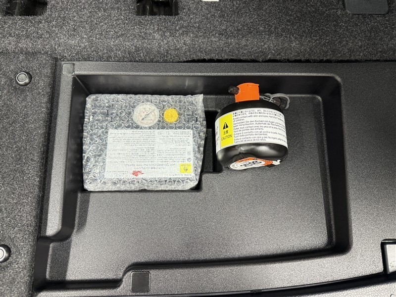 スペアタイヤレス車の為パンク修理キットになります。