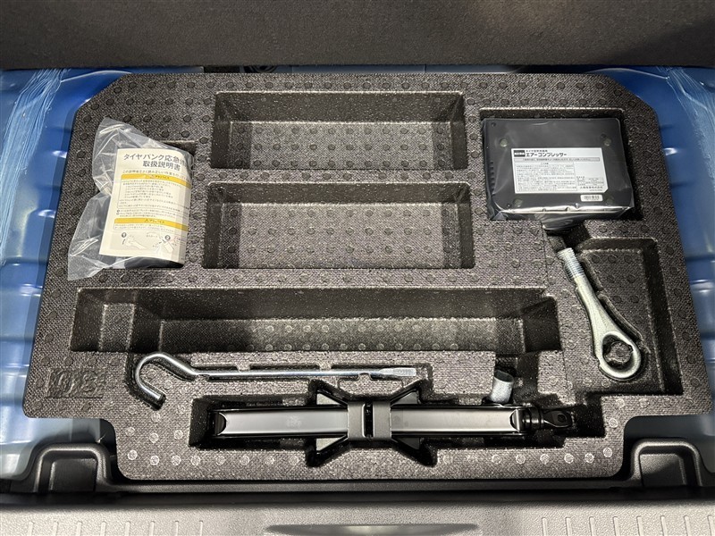 スペアタイヤレス車の為パンク修理キットになります。