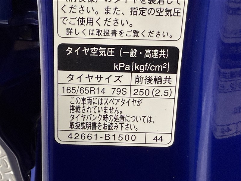 純正アルミホイール付きです。 装着タイヤサイズは165/65R14になります。