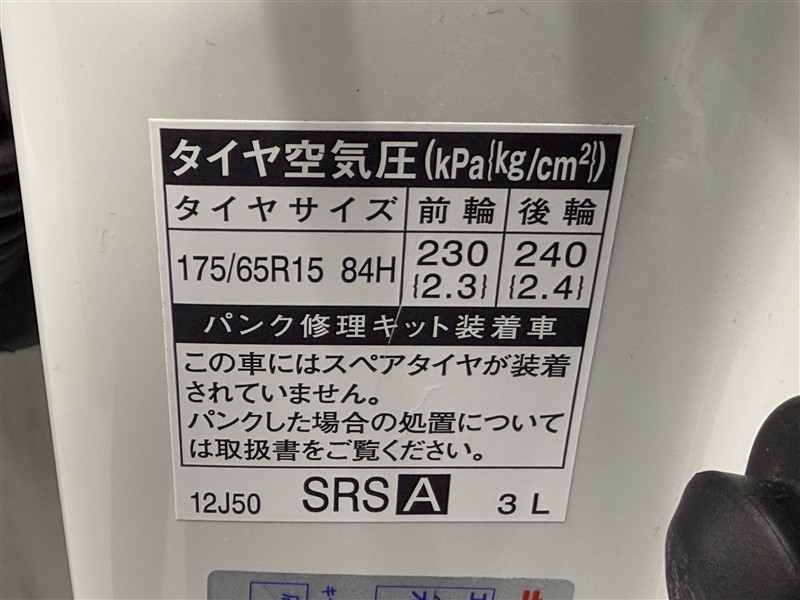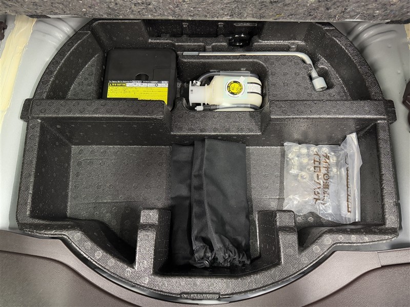 スペアタイヤレス車の為パンク修理キットになります。