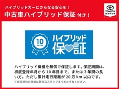 「中古車ハイブリッド保証」付き。ハイブリッド機構を無償で保証します。保証期間は、初度登録年月から10年目まで、またはロングラン保証が終わってから3年間。ただし累計走行距離が20万km以内です。