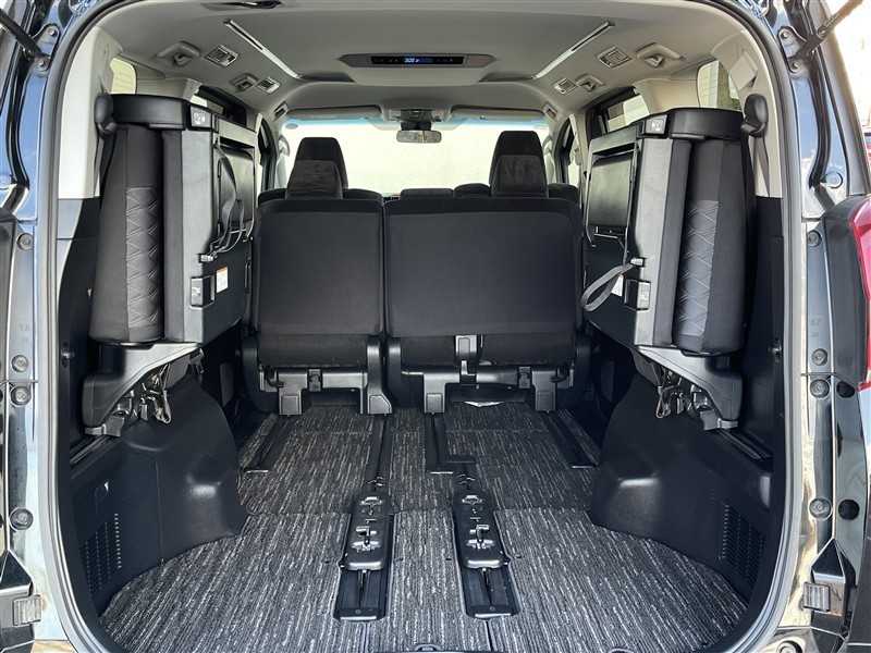 3列目シートは跳ね上げ式で折りたたみ可能です。キャンプ用品など大きな荷物もばっちり収納可能です!