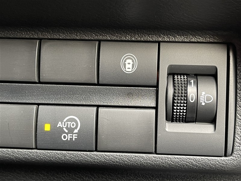 アイドリングストップOFFスイッチ、セーフティシールドスイッチ、ヘッドランプレベライザースイッチ。