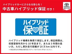 「中古車ハイブリッド保証」付き。ハイブリッド機構を無償で保証します。保証期間は、初度登録年月から10年目まで、またはロングラン保証が終わってから3年間。ただし累計走行距離が20万km以内です。