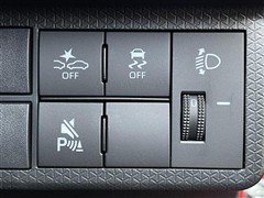 スマートアシストOFFスイッチ、コーナーセンサーブザーOFFスイッチ、VSC・TRC OFFスイッチ、手動光軸調整ダイヤル。