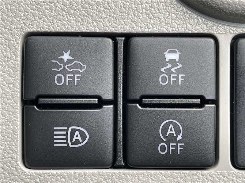 スマートアシストOFFスイッチ、オートハイビームスイッチ、VSC&TRC OFFスイッチ、エコアイドルOFFスイッチ。