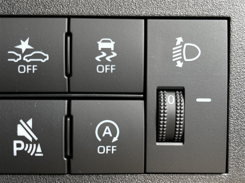 VSC・TRC OFFスイッチ、エコアイドルODO/TRIPスイッチ、手動光軸調整ダイヤル。