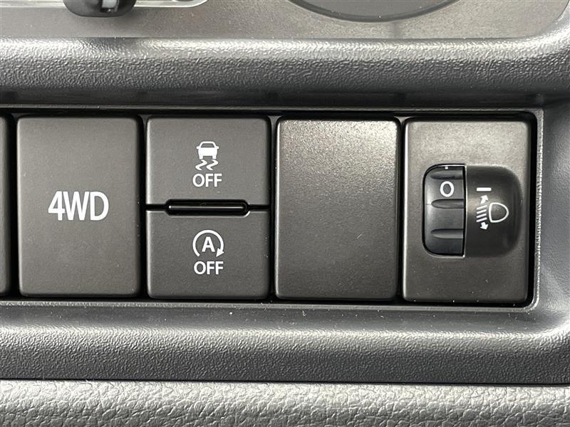 4WDスイッチ、ESP OFFスイッチ、アイドリングストップシステムOFFスイッチ、光軸調整ダイヤル。