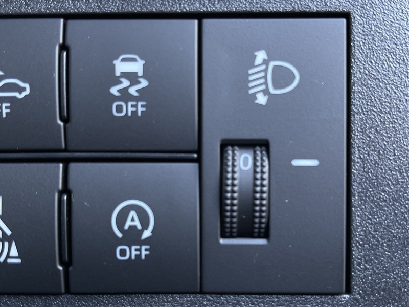 VSC・TRC OFFスイッチ、エコアイドルOFFスイッチ、手動光軸調整ダイヤル。