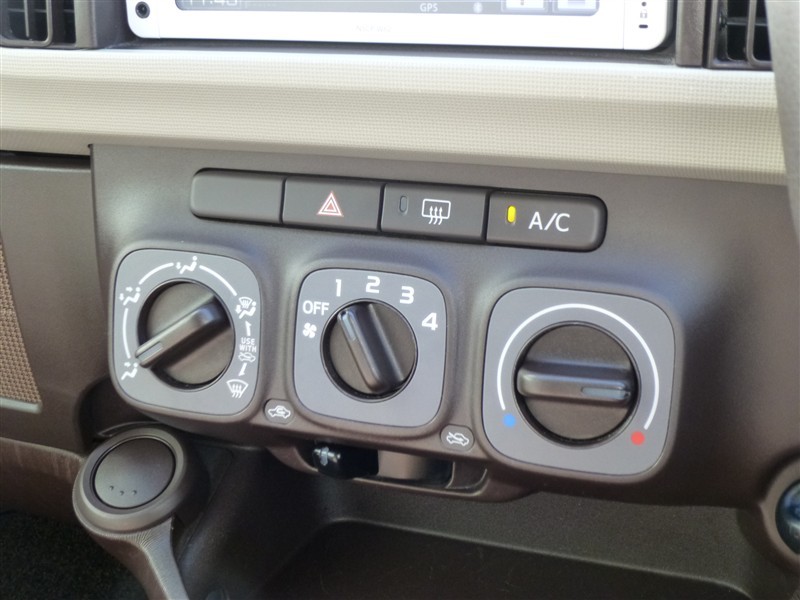 マニュアルエアコン付き。1年中快適な室内を提供!