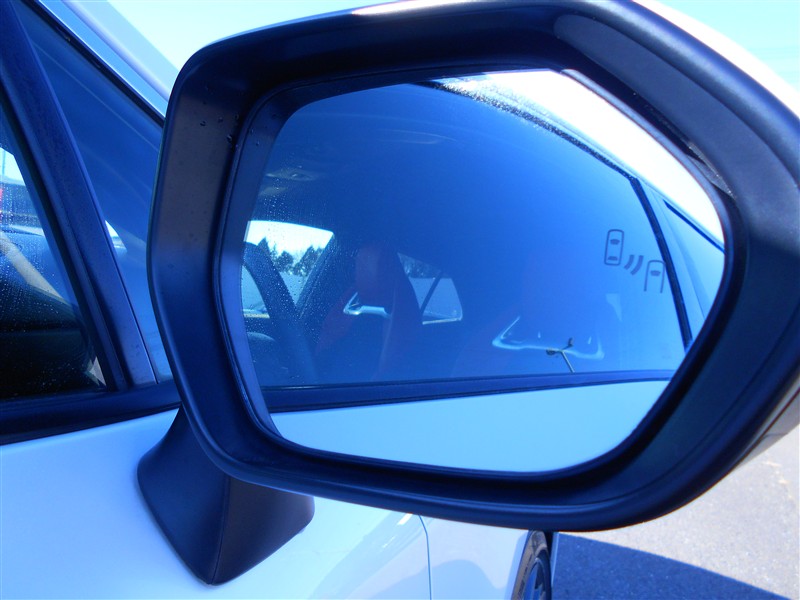 車線変更時などに、ドアミラーでは確認しにくい後側方エリア(ブラインドスポット)に存在する車両をレーダーで検知。警告サインをドアミラー等に表示することで、運転者に注意喚起する機能。