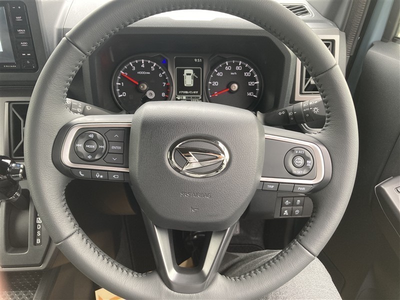 ステアリングです。オーディオや通話,クルーズコントロールなどの操作をお手元で完結。