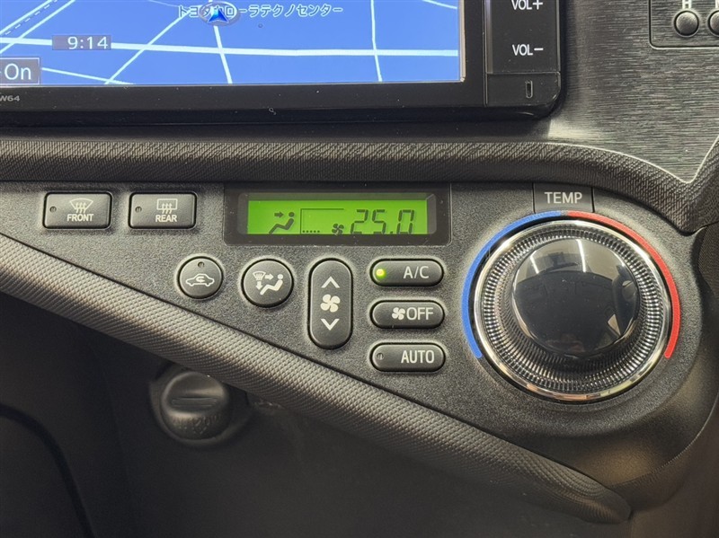 ハイブリット車はEV走行中とても静かに走るので、歩行者に車の接近を知らせる車両接近通報装置が付いてます。こちらのボタンで解除することも可能です。