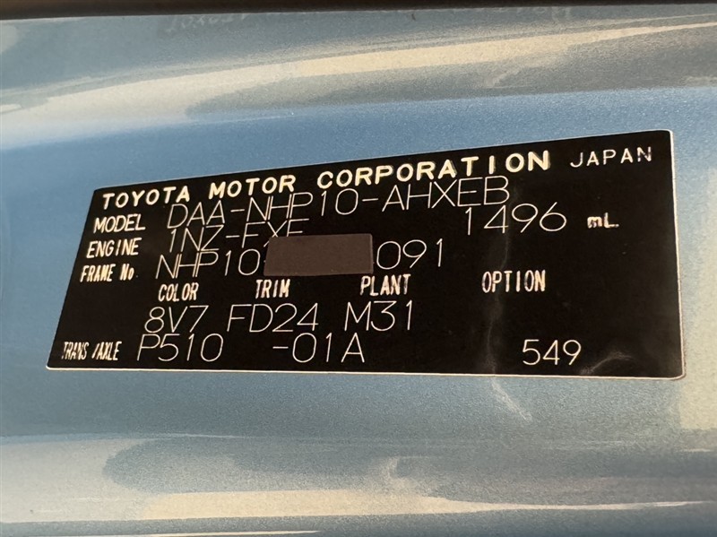 車台番号(下3桁)【091】