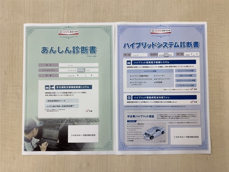 「サポカーあんしん診断」「ハイブリットシステム診断」実施済み。安心安全にお乗り頂けるようトヨタ専用診断機器で綿密にシステムを点検しています。