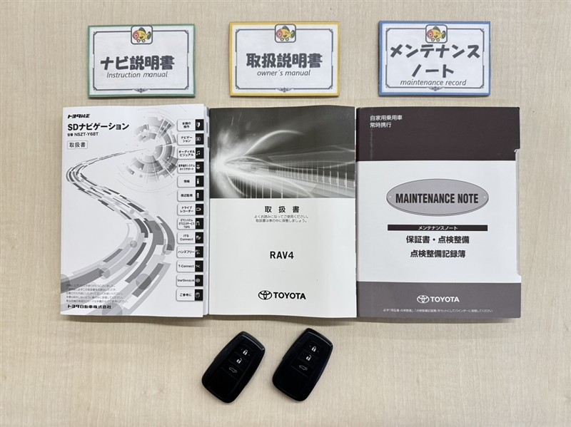 基本操作はもちろん、最近の車は装備もどんどん進化しているので困った時に役立つ取扱説明書、整備歴が確認できるメンテナンスノートが付いてます。安心ですね☆☆