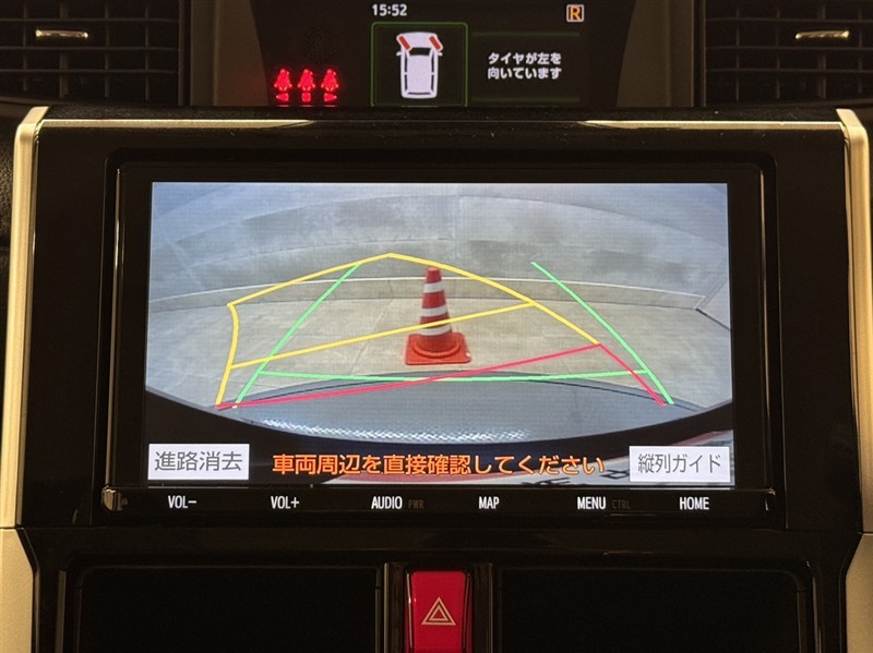 バックガイドモニター付きです。車の後方に小型カメラが付いており、バックする際の後方の様子をモニター上に表示します。