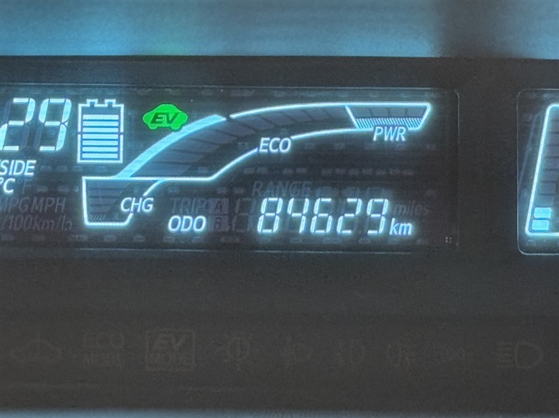 ハイブリット車は走行モードを選択することができます。燃費重視の時は「ECOモード」、モーターのみで静かに走る時は「EVモード」と道路状況に応じて使い分け出来ます。