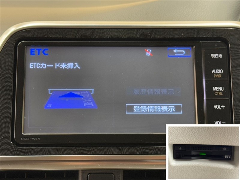 ナビ画面連動のETC付きです。高速道路料金所での小銭の出し入れや雨天時における窓の開け閉めなどの煩わしさが解消できます。料金所の通過もスムーズで快適ですよ。