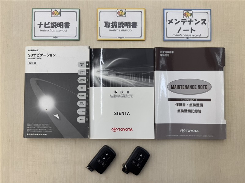 基本操作はもちろん、最近の車は装備もどんどん進化しているので困った時に役立つ取扱説明書、整備歴が確認できるメンテナンスノートが付いてます。安心ですね☆☆