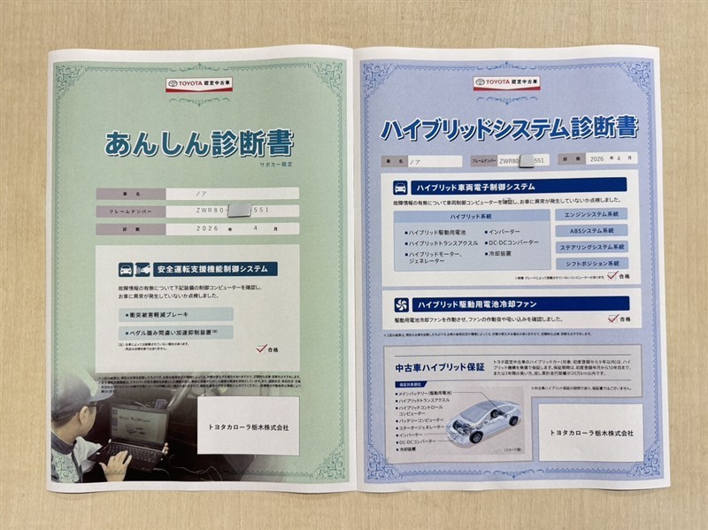 「サポカーあんしん診断」「ハイブリットシステム診断」実施済み。安心安全にお乗り頂けるようトヨタ専用診断機器で綿密にシステムを点検しています。