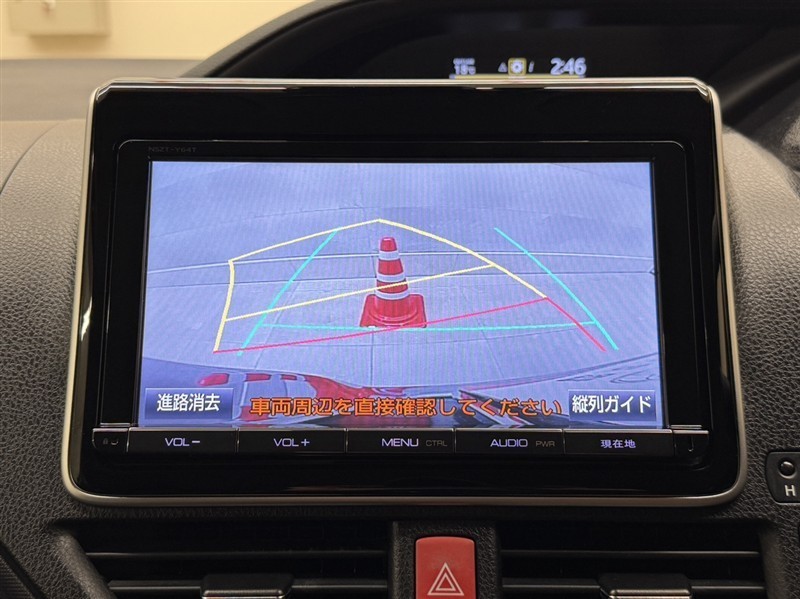 バックガイドモニター付きです。車の後方に小型カメラが付いており、バックする際の後方の様子をモニター上に表示します。