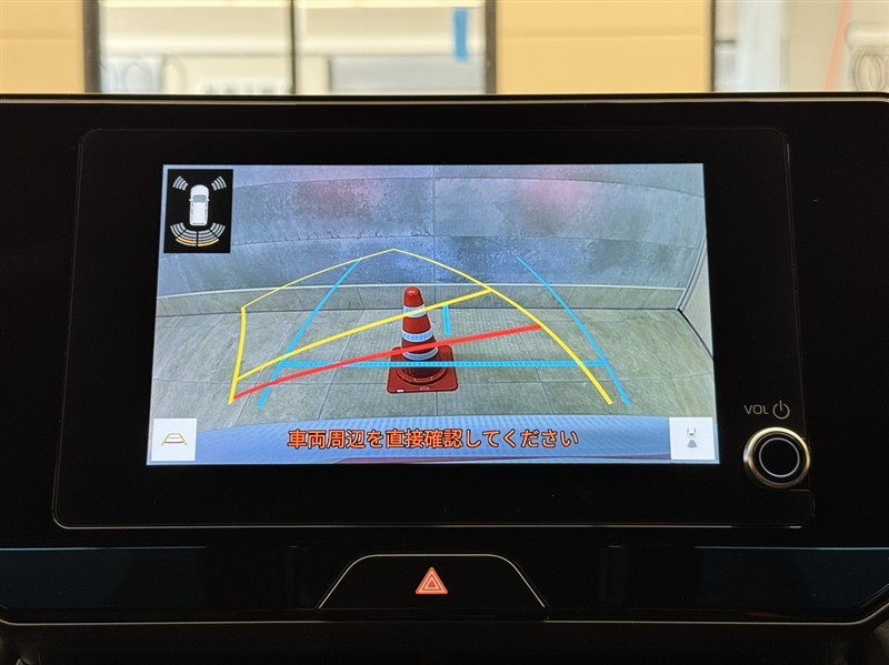 バックガイドモニター付きです。車の後方に小型カメラが付いており、バックする際の後方の様子をモニター上に表示します。