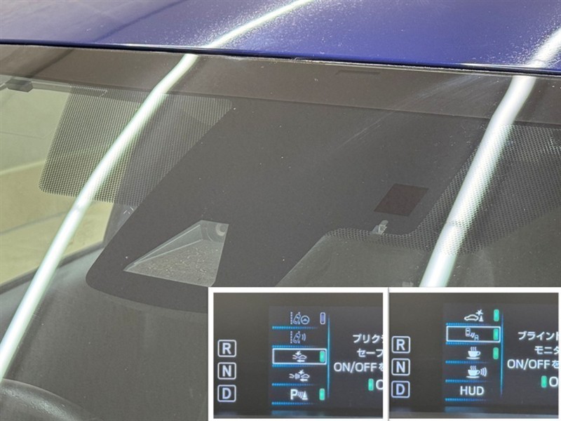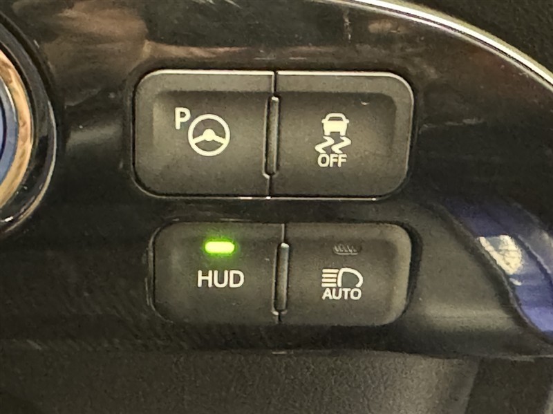 HUD=ヘディングアップディスプレイ。フロントガラス下部に速度やハイブリッドシステムの走行状態などを映し出し、視線を余り動かすことなく確認出来ます。