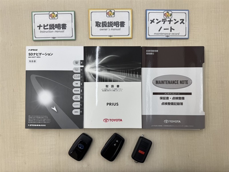 基本操作はもちろん、最近の車は装備もどんどん進化しているので困った時に役立つ取扱説明書、整備歴が確認できるメンテナンスノートが付いてます。安心ですね☆☆