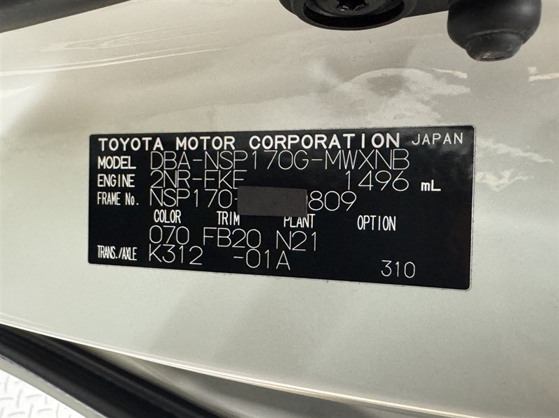 車台番号(下3桁)【809】