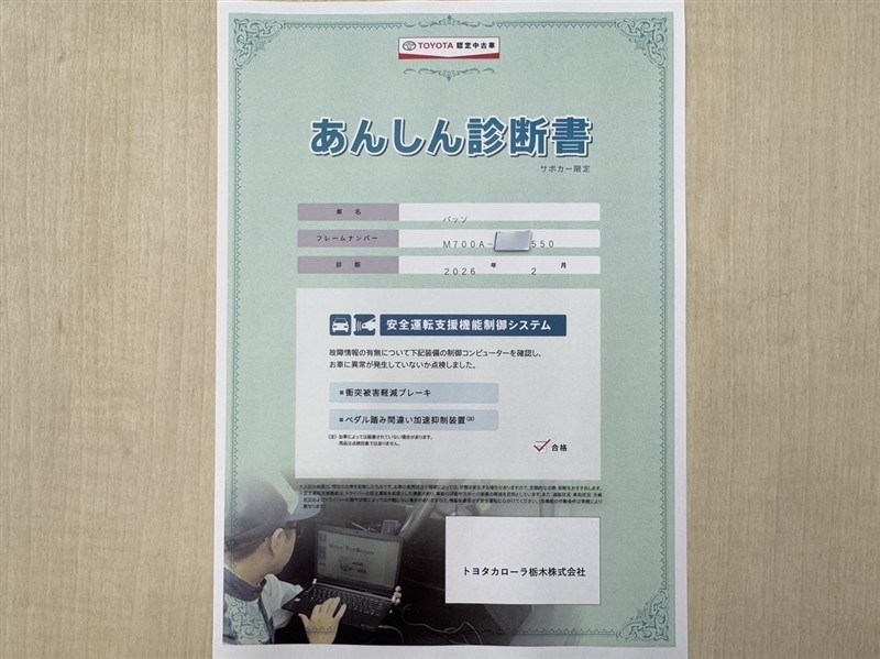 トヨタ自動車が認定した検査員が、厳正に検査した車両検査証明書を発行しています。キズの程度や場所を展開図で分かりやすく表示しているのでおクルマの状態がすぐ分かります。