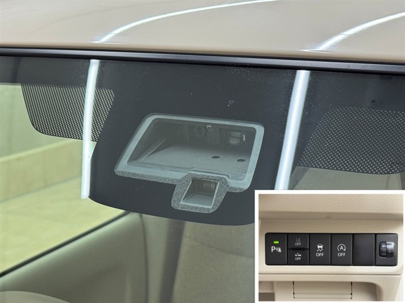 衝突被害軽減ブレーキに加え、ペダル踏み間違い急発進抑制装置等を搭載した「サポカーS」です。安全機能の詳細はスタッフまでおたずねください。機能を過信せず、必ずご自身で安全運転を行ってください。