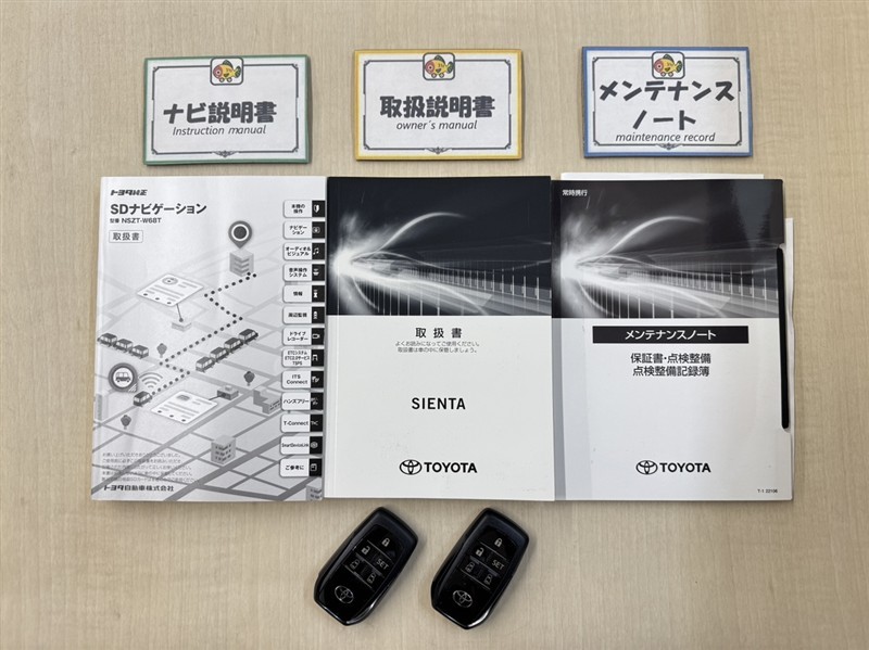 基本操作はもちろん、最近の車は装備もどんどん進化しているので困った時に役立つ取扱説明書、整備歴が確認できるメンテナンスノートが付いてます。安心ですね☆☆