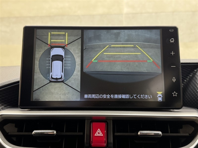 真上から見下ろしたような視点で車とその周囲を確認出来る画面と、車両後方を映し出すバックモニター画面の2つを表示してくれます。