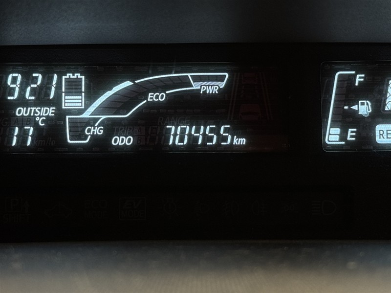 EVモードスイッチが付いているので、早朝・深夜の住宅街や屋内駐車場などで、騒音や排気ガスを気にすることなく走行出来ます。