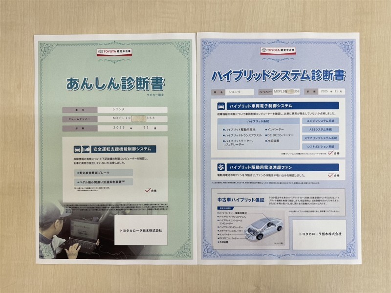 「サポカーあんしん診断」「ハイブリットシステム診断」実施済み。安心安全にお乗り頂けるようトヨタ専用診断機器で綿密にシステムを点検しています。