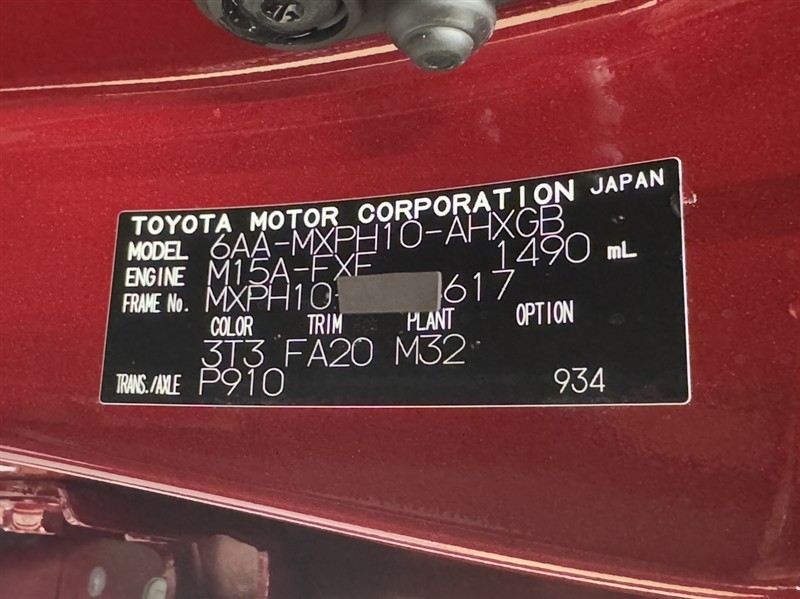 車台番号(下3桁)【617】