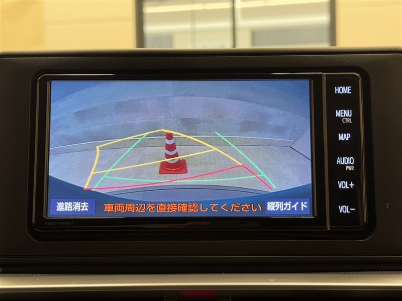 バックガイドモニター付きです。車の後方に小型カメラが付いており、バックする際の後方の様子をモニター上に表示します。