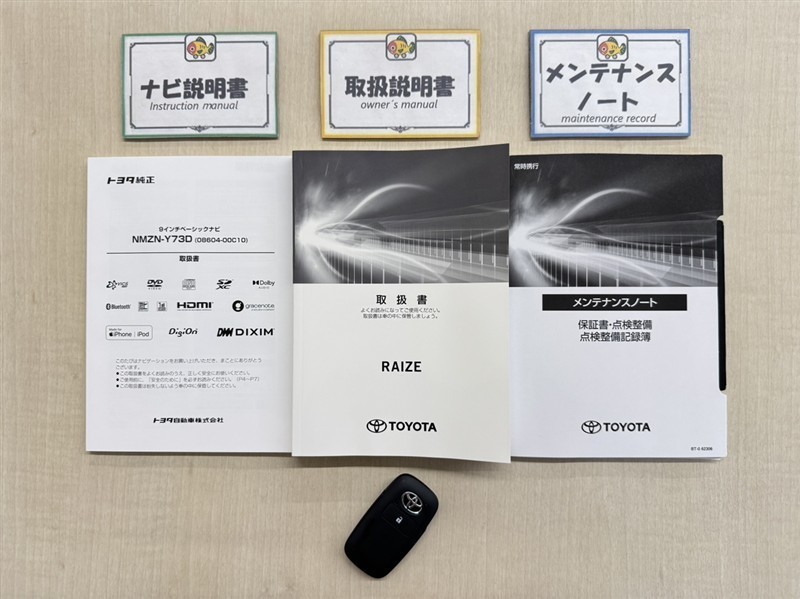 基本操作はもちろん、最近の車は装備もどんどん進化しているので困った時に役立つ取扱説明書、整備歴が確認できるメンテナンスノートが付いてます。安心ですね☆☆