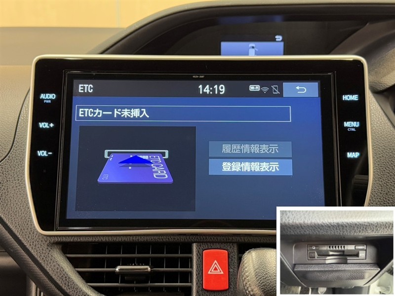 ナビ画面連動のETC付きです。高速道路料金所での小銭の出し入れや雨天時における窓の開け閉めなどの煩わしさが解消できます。料金所の通過もスムーズで快適ですよ。