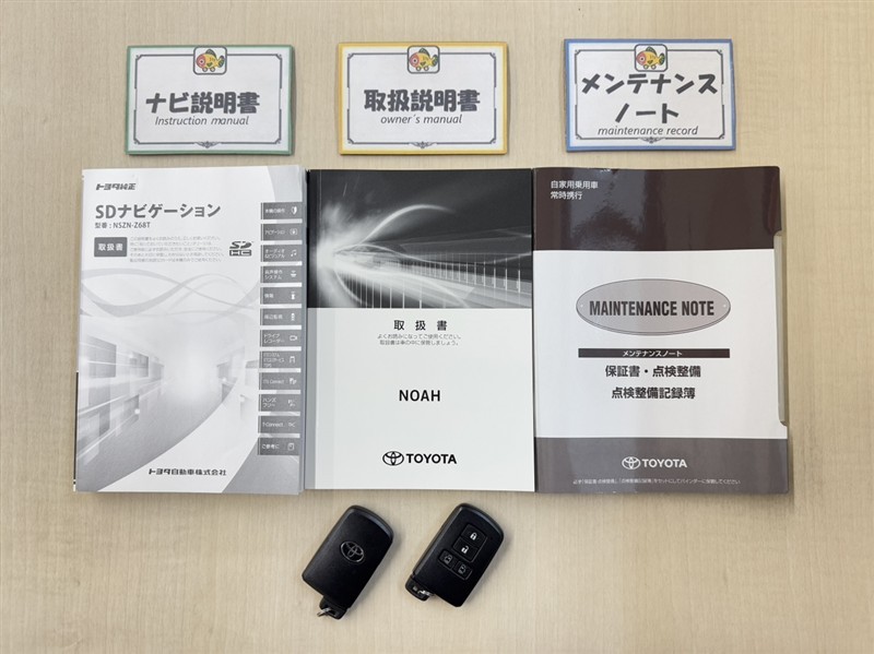 基本操作はもちろん、最近の車は装備もどんどん進化しているので困った時に役立つ取扱説明書、整備歴が確認できるメンテナンスノートが付いてます。安心ですね☆☆