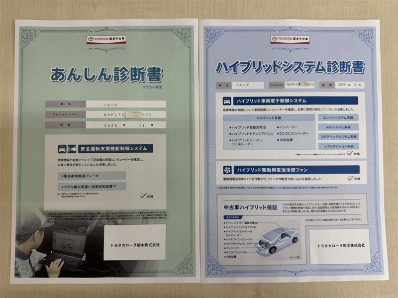 「サポカーあんしん診断」「ハイブリットシステム診断」実施済み。安心安全にお乗り頂けるようトヨタ専用診断機器で綿密にシステムを点検しています。
