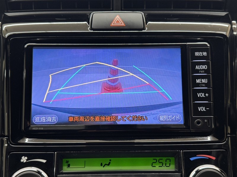 バックガイドモニター付きです。車の後方に小型カメラが付いており、バックする際の後方の様子をモニター上に表示します。