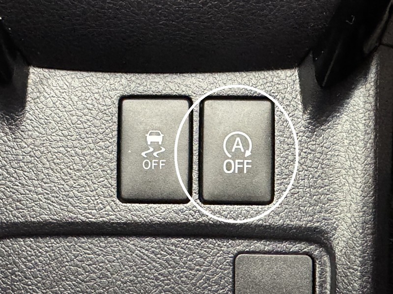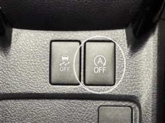 アイドリングストップ機能OFFスイッチです。エアコンを使用している時や、街中など停止や右左折が多い道を走る時など一時的にOFFに出来ます。