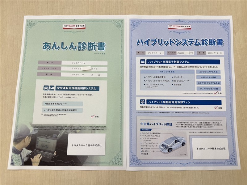 「サポカーあんしん診断」「ハイブリットシステム診断」実施済み。安心安全にお乗り頂けるようトヨタ専用診断機器で綿密にシステムを点検しています。