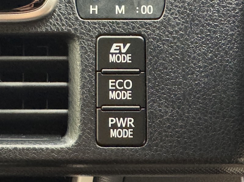 ハイブリット車は走行モードを選択することができます。力強く走る時は「PWRモード」、燃費重視の時は「ECOモード」、モーターのみで静かに走る時は「EVモード」と道路状況に応じて使い分け出来ます。