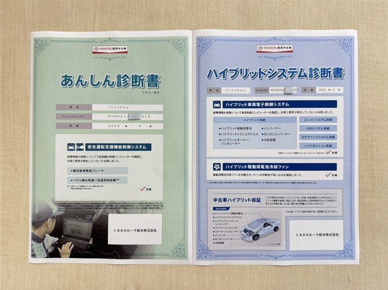 「サポカーあんしん診断」「ハイブリットシステム診断」実施済み。安心安全にお乗り頂けるようトヨタ専用診断機器で綿密にシステムを点検しています。